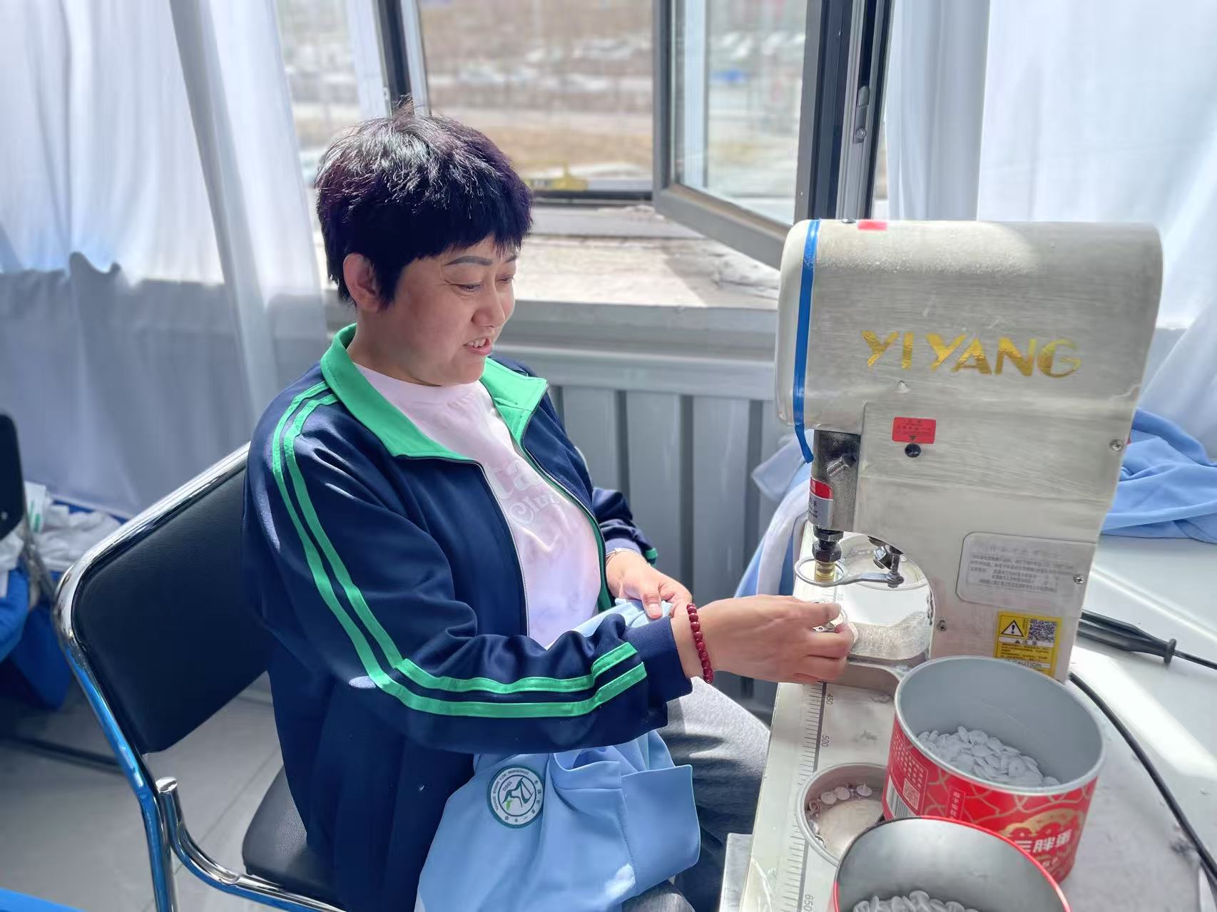 在东胜区残疾人辅助性就业基地,43岁的苏娟熟练地操作设备,为一件件校服整齐地装订纽扣。经过一年的工作锻炼,她自信地表示自己已经是个“资深熟练工”了。“因为有残疾不方便,之前好几年都没有出来工作,也没有收入,只能在家做做家务。”苏娟表示,在家人朋友的鼓励下,她决定走出家门,改变现状。“这份工作我很满意,时间比较灵活,能给家里减轻负担,更重要的是证明了自己的价值。”一想到手里做好的校服会穿在孩子们身上,她就觉得“更有干劲儿了”。