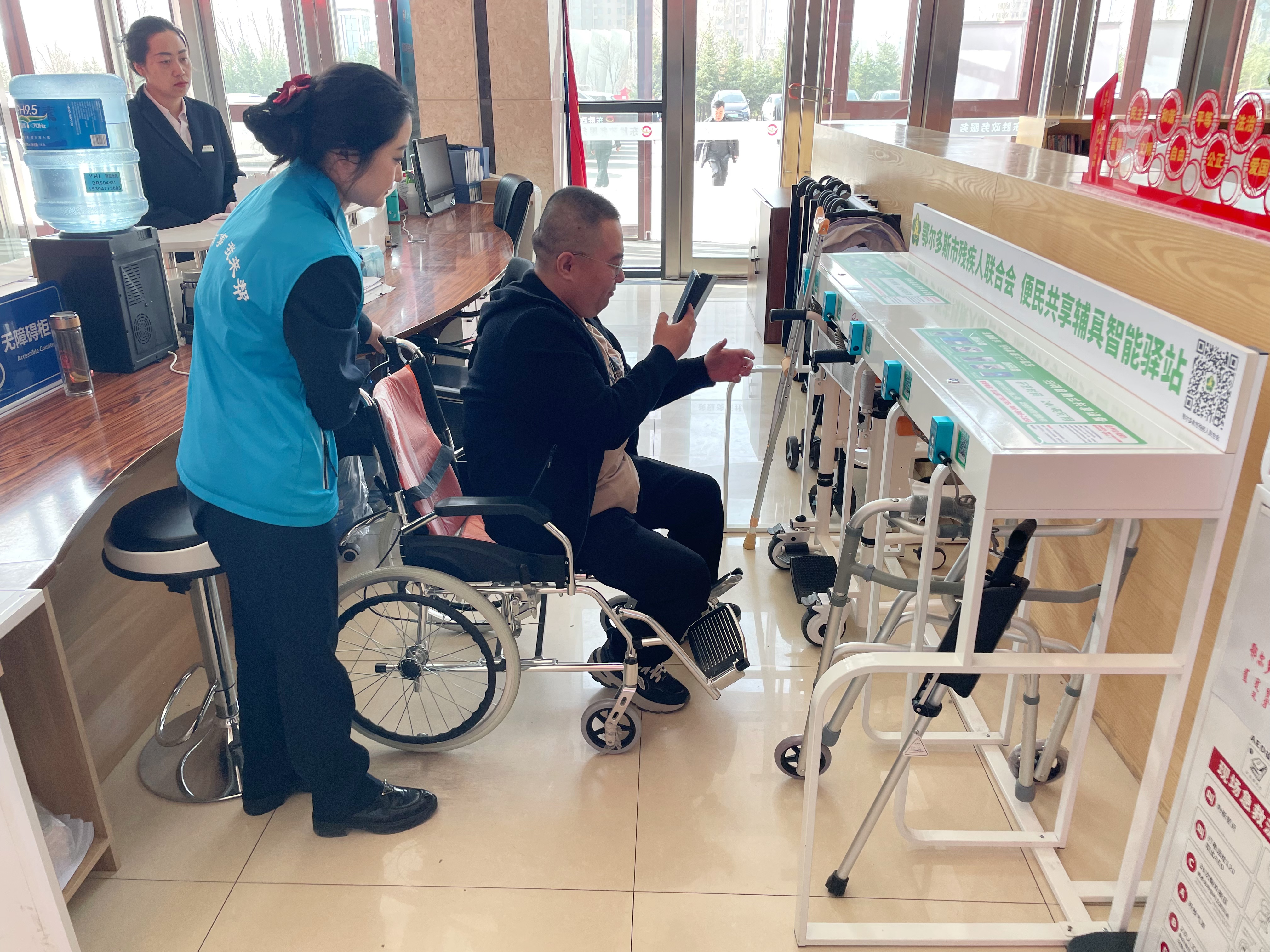 走进内蒙古自治区鄂尔多斯市东胜区的政务服务大厅,一处“便民共享辅具智能驿站”映入眼帘。为了更好地给残障人士出行提供便利,鄂尔多斯市残联在政务大厅、人民法院、街道、社区等人员来往密集的场所设置了7个24小时开放的便民共享辅具智能驿站,配备了轮椅、移位器、助行器等辅具,推动了全区无障碍环境建设。“这几年每次到这里办事,都会觉得更人性化、更便利了,不仅可以自助借用轮椅,还在服务窗口特设了低位服务台,铺设了盲道,修建了专用洗手间。在残疾人业务办理服务的进步中,我深切感受到了社会对弱势群体权益保障的重视与用心。”来到政务大厅办理业务的李先生感慨地说。