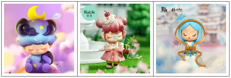 下面图中三个玩偶,左一是泡泡玛特的Dimoo系列,中间是若来推出的Nancy,右一是国家宝藏联合你好历史推出的文创。如果不是资深玩家,放在一起谁知道是哪家品牌的什么系列呢?