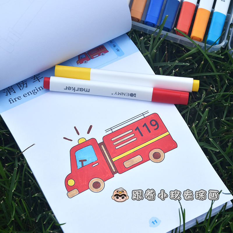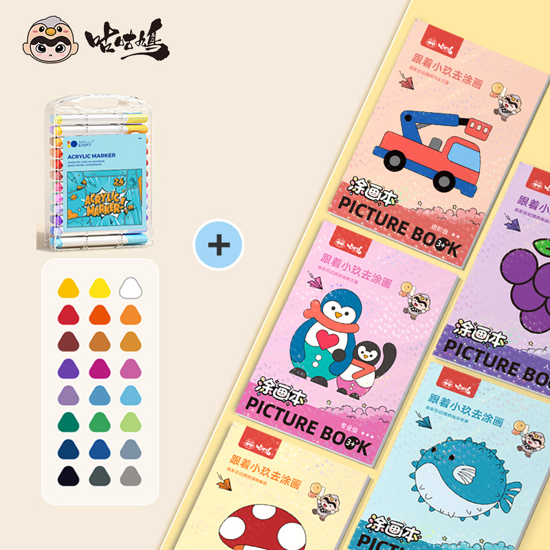 全套5本【跟着小玖去涂画+24色配套马克笔】